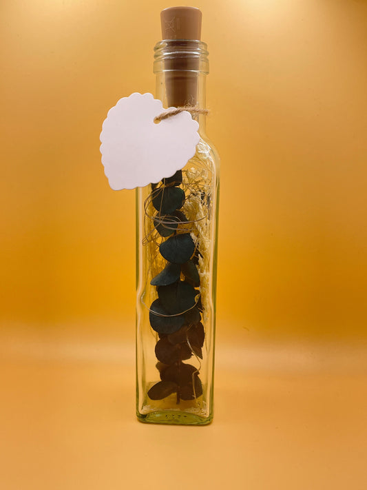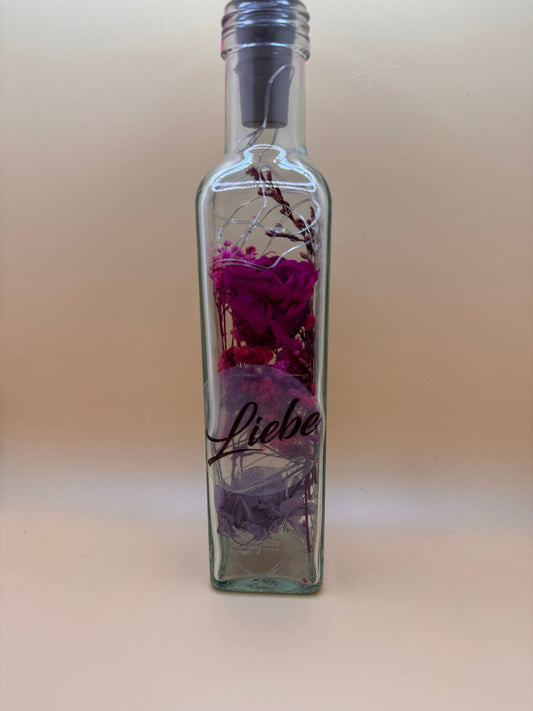 Entdecke die einzigartige Fusion von Natur und Licht mit Flowerbottles. Unsere exquisiten Flaschen, gefüllt mit handverlesenen Trockenblumen und sanft beleuchtet von einer LED Lichterkette, verwandeln jeden Tisch in eine charmante Oase. Genieße die beruhigende Atmosphäre dieser stilvollen Tischlampen, die nicht nur Licht spenden, sondern auch zeitlose Schönheit und natürliche Eleganz in Dein Zuhause bringen.