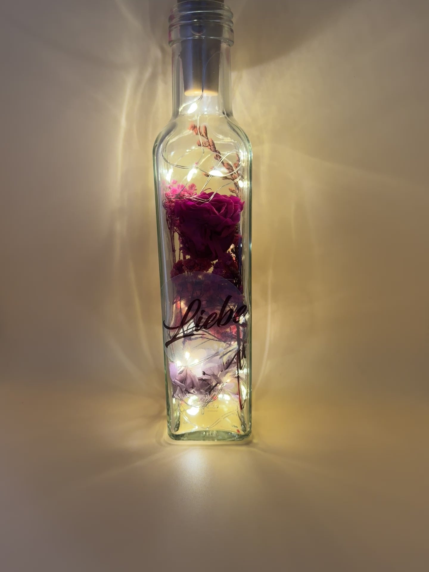 Verleihe deinem Zuhause mit unseren exquisiten Flowerbottles einen Hauch von Magie! ✨🌼 Unsere Flowerbottle verleiht deinen Räumen das gewisse Etwas. Jede Flasche wird von Hand gefertigt und mit sorgfältig ausgewählten Trockenblumen gefüllt. Die Kombination aus sanften Farbtönen und dem warmen Licht der Flaschen schafft eine harmonische Atmosphäre. 🏡💡
